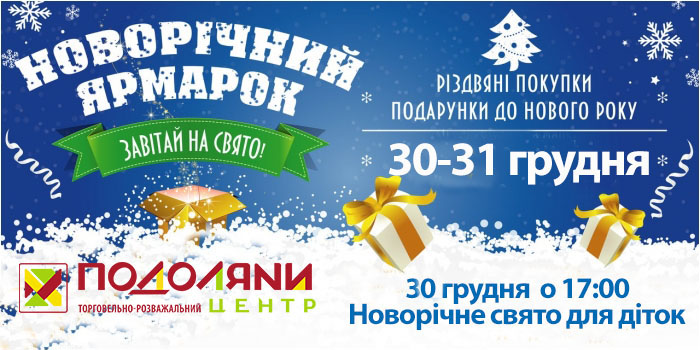 30 грудня  у холі ТРЦ "Подоляни" (біля казкового палацу) о 17:00 розпочнеться дитяче новорічне свято та зустріч із Дідом Морозом!