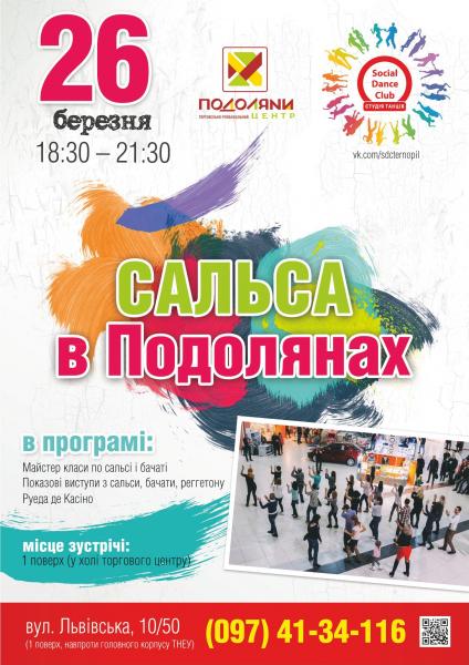 Бажаєте навчитись танцювати запальну сальсу та бачату, а також активно провести недільний вечір? Запрошуємо усіх на безкоштовний майстер-клас із сальси та бачати, що відбудеться 26 березня з 18:30 по 21:30 в холі ТРЦ "Подоляни".